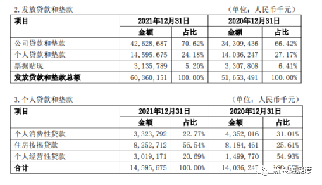 数据显示,截至2020年、2021年底,烟台银行个人贷款和垫款金额分别为140.36亿元、145.96亿元,其中个人消费性贷款金额分别是43.42亿元、33.23亿元。个人消费贷在总贷款的占比于2021年底降至5.51%。
