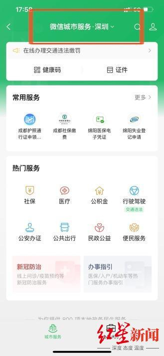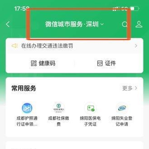 比如,在微信中依次点击“我-服务”进入“城市服务”。
