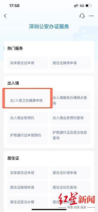 当你选择所在位置为出入境口岸所在地,在“热门服务”栏目,点击“公安办证”,再选择“出入境”栏目里的“出/入境卫生健康申报”,按要求填写即可快速完成申报。