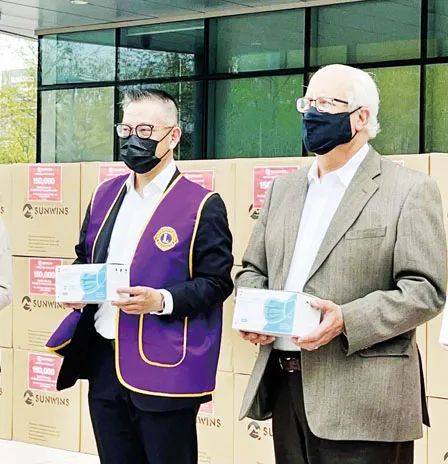 ● 2021年,程慕阳(左)向列治文市捐赠口罩