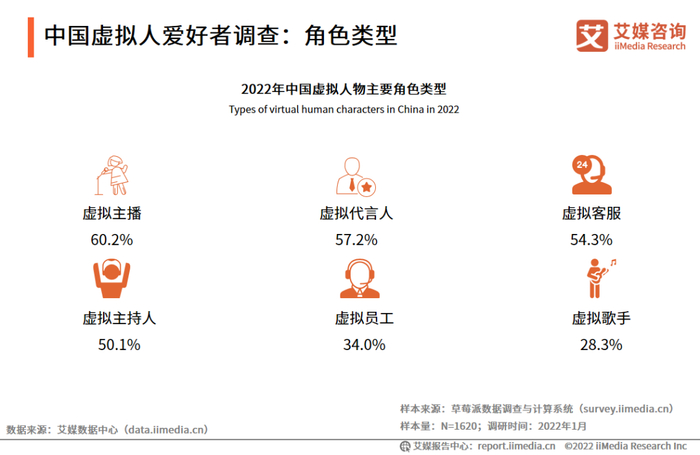 用户调研:超七成喜欢虚拟人物形象的原因是其外形/声音