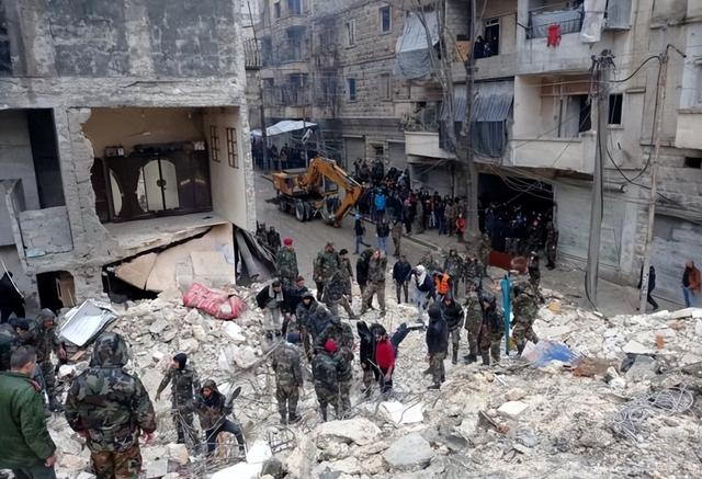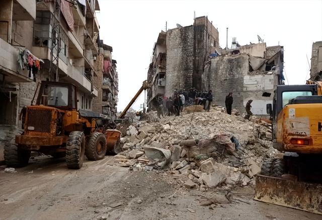 叙中部哈马省也是地震的重灾区之一。在哈马省首府哈马市的阿尔巴恩街区,救援人员和民众正在一栋垮塌建筑旁清除瓦砾,希望营救出废墟下的受困者。数台挖掘机同时作业,救援人员用铲子辅助清理。