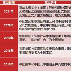 国企改革政策密集,强化通过资产重组、股权置换等多种方式,加大专业化整合力度。2020年6月,我国中央全面深化改革委员会议审议通过了《国企改革三年行动方案(2020-2022年)》,提出做强做优做大国有经济,增强国有企业活力、提高效率,加快构建新发展格局。2022年5月,国资委发布《提高央企控股上市公司质量工作方案》,提出以优势上市公司为核心,通过资产重组、股权置换等多种方式,加大专业化整合力度,推动更多优质资源向上市公司汇聚,提出努力推动上市公司市场价值与内在价值相匹配,促进国有资产保值增值。
