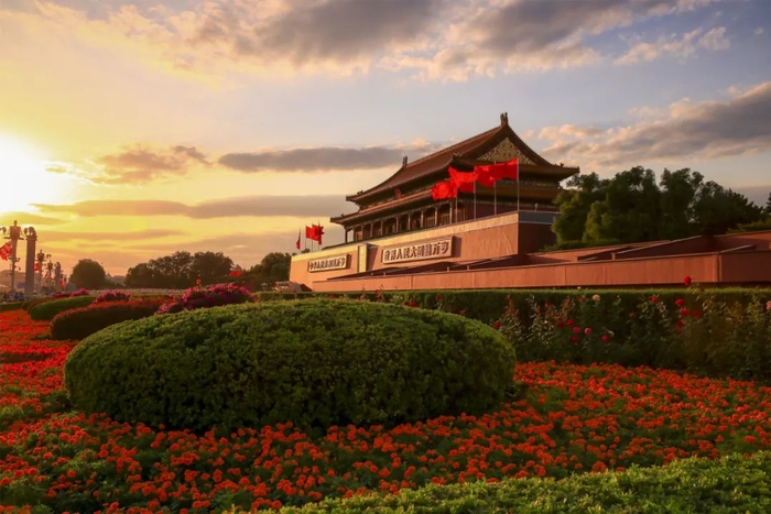 天安门广场是北京的心脏地带,是世界上最大的城市中心广场。它占地面积44公顷,东西宽500米,南北长880米,地面全部由经过特殊工艺技术处理的浅色花岗岩条石铺成。每天早晨的升国旗和每天日落时分的降国旗是重要的国家典礼仪式,看着朝霞辉映中鲜艳的五星红旗,心中升腾的是激昂与感动。同时,天安门广场是我国无数重大政治、历史事件的发生地,是中国从衰落到崛起的历史见证。