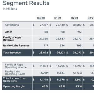 Meta 的命脉是广告,超出预期的广告表现得到了市场的奖励。包括 Facebook、Instagram、Messenger、WhatsApp 和其他服务在内的社交家族本季度营收 314.38 亿美元,同比下降 4.1%,好于分析师下降 6% 的预期,总体广告收入环比增长近 15%。