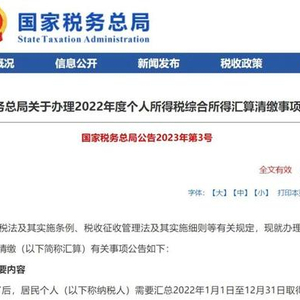 根据个人所得税法及其实施条例、税收征收管理法及其实施细则等有关规定,现就办理2022年度个人所得税综合所得汇算清缴(以下简称汇算)有关事项公告如下: