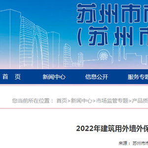中国质量新闻网讯 近期,苏州市市场监督管理局发布2022年建筑用外墙外保温产品质量市级监督抽查情况公告(第111期)。