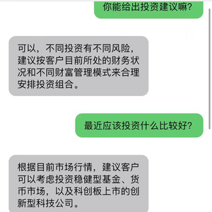 “ChatGPT给出的建议很冷静,但并未考虑客户的风险偏好、资金周期、现有产品情况。ChatGPT所代表的人工智能机器人主要是在合理性下给出的相对正确的指令,只能算是标准话术。”某股份制银行北京地区金牌客户经理告诉新京报贝壳财经记者,这种交互过于“冷冰冰”了。而近年来银行理财一直倡导的是“有温度的银行”,ChatGPT无法替代人与人之间交流所产生的效果,因此不会真的替代人。
