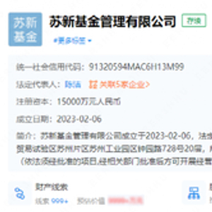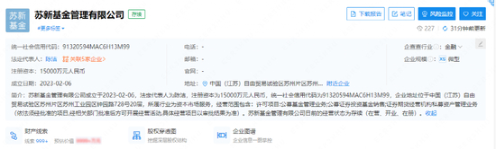 2月7日,据企查查显示,苏新基金管理有限公司成立于 2023-02-06,法定代表人为陈洁,注册资本为 1.5 亿元,经营范围包含:公募基金管理业务;公募证券投资基金销售;证券期货经营机构私募资产管理业务。注册地为江苏省苏州工业园区。