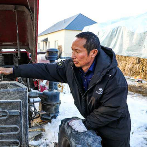 日前,邱书学在检修拖拉机,及早拉运农资,为大豆春播做准备。 杨俊钦 摄