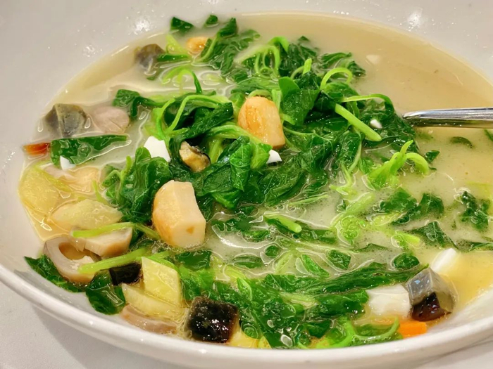 比如上汤,用豪华的火腿猪骨母鸡等食材炖出的鲜美高汤,将浓浓鲜味注入蔬菜的灵魂,那就必然好吃了。