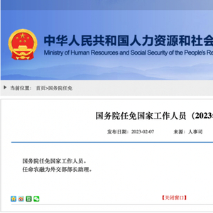 据人社部官网7日消息国务院任免国家工作人员:任命农融为外交部部长助理。