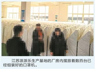 记者春节前实地探访了派派乐最早一家公司的注册地——江苏省宿迁市沭阳县。自县城向北约11公里的立派路东侧,一栋挂着“派派乐集团”标识的醒目蓝色建筑就是它的生产基地,王姓负责人称,“全国所有的机子都是从我们这里发出去的”。临近假期,工人已经放假,厂房内摆放着数百台已经组装好的口罩机。