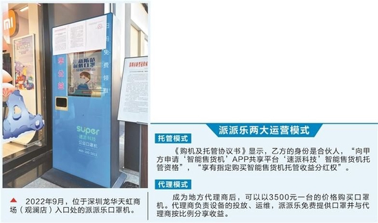 多位生产口罩机的业内人士告诉证券时报记者,疫情开始后冒出了上百家口罩机公司,运营模式各有不同。有的以销售机器为主,有的类似共享充电宝的加盟模式,类似派派乐打着公益旗号的公司也不少见。
