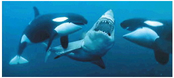 面对虎鲸,噬人鲨可以说是闻风丧胆、草木皆兵。一旦发现虎鲸进入自己的领地,噬人鲨就会落荒而逃。这也可以理解,毕竟好汉不吃眼前亏。