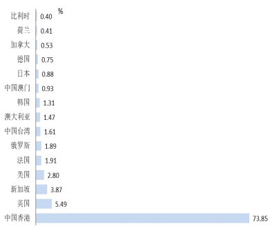 图7:使用CNH最多的15个经济体 数据来源:SWIFT。注:除了荷兰和比利时,其他国家(地区)均为离岸人民币清算中心。数据截至2022年12月。
