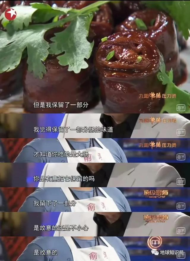 外号“小胖”的俞涛,在制作九转大肠的过程中没怎么清洗,保留了大肠部分的“原汁原味”,制作了一份带“馅”的大肠。