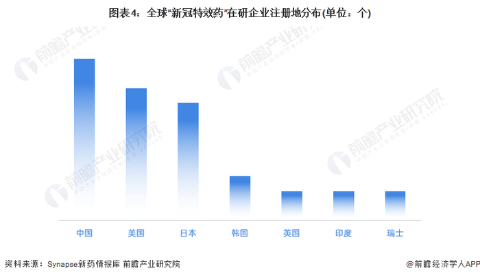 全球“新冠特效药”在研企业的注册地较多地分布在中国,但这些在中国的在研企业并非全是中国本土企业,有几乎一半的企业是在中国驻扎的外资企业。其次是美国和日本,两地的在研企业分别为9个和8个。