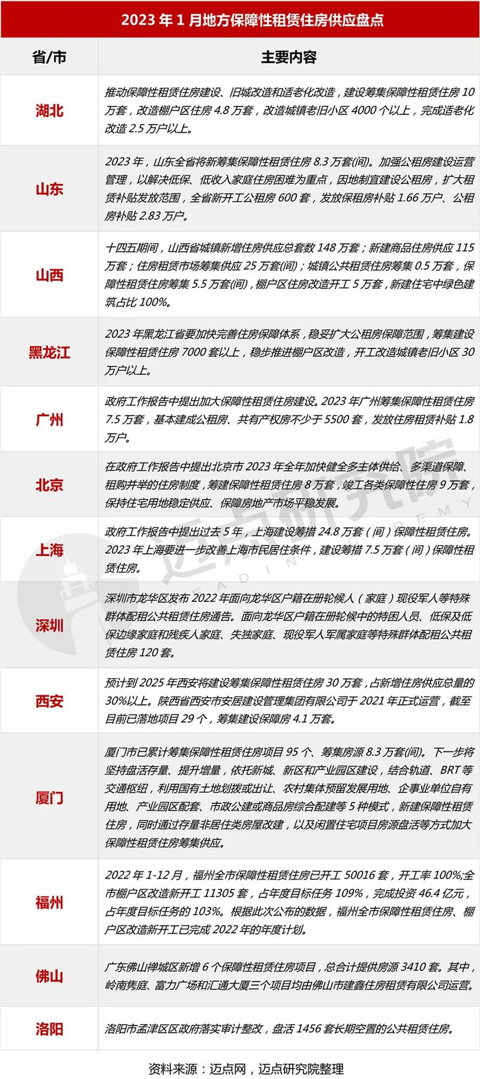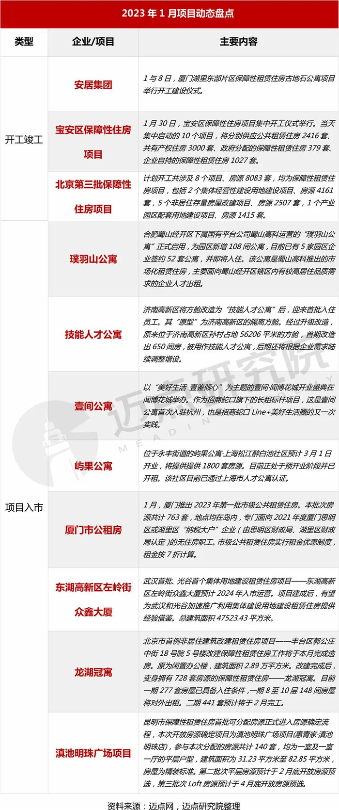 1月,湖北、山东、山西、黑龙江、北京、广州、上海等省市继续公布保障性租赁住房的筹集进度和供应计划。其中,福州已完成2022年度保租房开工目标。