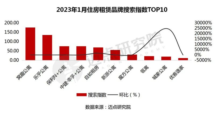 本月搜索指数排名前十的品牌依次是:窝趣公寓、乐乎公寓、保利N+公寓、中建·幸孚+公寓、自如租房、新派公寓、魔方公寓、瓴寓、城家公寓、优客逸家。其中,值得重点关注的是城家公寓,本月搜索指数达到19.83,位居搜索指数TOP9。