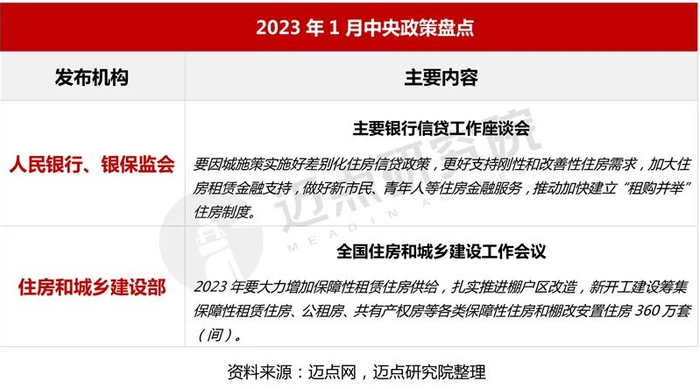 1月10日,人民银行、银保监会联合召开主要银行信贷工作座谈会,研究部署落实金融支持稳增长有关工作。在住房租赁方面,会议强调,要因城施策实施好差别化住房信贷政策,更好支持刚性和改善性住房需求,加大住房租赁金融支持,做好新市民、青年人等住房金融服务,推动加快建立“租购并举”住房制度。