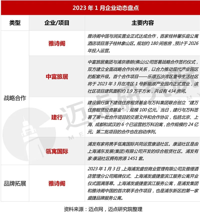 1月,中富旅居积极推动战略合作,中富旅居与浦京德朗签订战略合作协议,合力推动产业园区的配套升级;乐璟生活社区与委托管理方武汉东风日产乘用车公司签订合作协议,负责东风日产员工宿舍运营管理,总房量390间;另外,上海中富旅居企业集团有限公司与长三角投资(上海)有限公司旗下的长江投资实业股份有限公司在上海青浦赵巷绿洲智谷签订战略合作协议,合资成立长三角租赁住房运营公司,主要在上海地区就集中式公寓-企业员工住宿领域、政府人才公寓及其延伸产业租赁领域开展相关服务业务。
