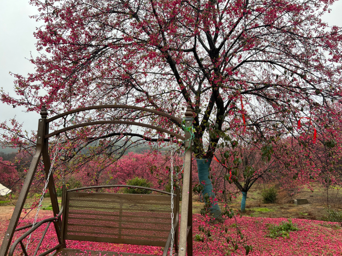 五马寨漫山遍野的樱花仿佛一片粉色花海。温永雄 摄