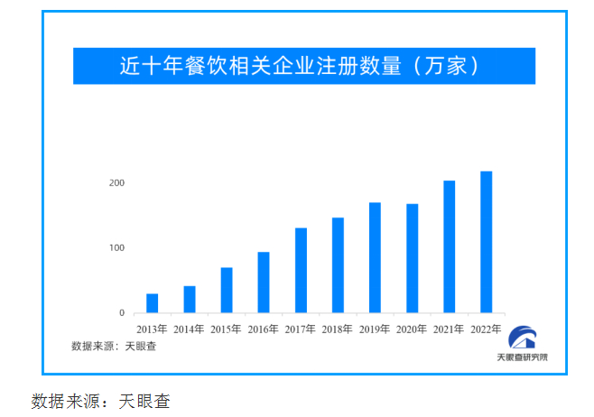 与此同时,我国餐企积极求变、经营韧性强也是餐饮业能较快复苏的底气所在。天眼查研究院数据显示,从2019年疫情暴发至2022年的这三年间,全国的餐企存续数量除了2020年有微弱下降之外,2021、2022年这两年均保持正增长。可见,在疫情的冲击下,我国餐企的生存能力进一步提升,经营韧性在进一步增强。