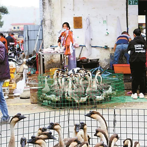 ■从化鳌头墟的鸡鸭鹅摊档非常热闹。