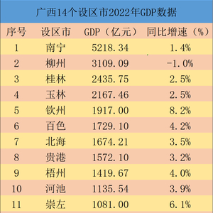 广西14个设区市2022年GDP数据。图源广西头条NEWS