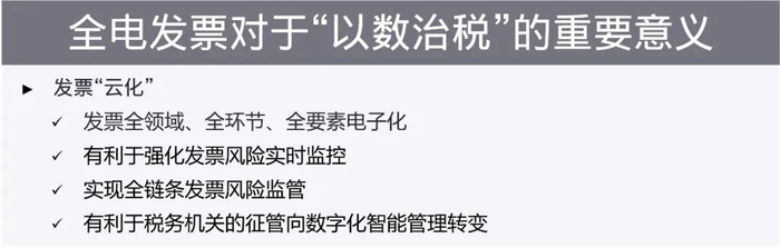 随着大数据时代的来临,当前中国税务机关以发票全领域、全环节、全要素电子化改革为突破口,启动实施金税工程四期建设2。全电发票的推进在给企业带来诸多便利的同时,也对于企业开票、用票等全流程予以自动化、智能化的管控,从而在税务上采取更精准的监管,提升纳税人的总体税务遵从水平。
