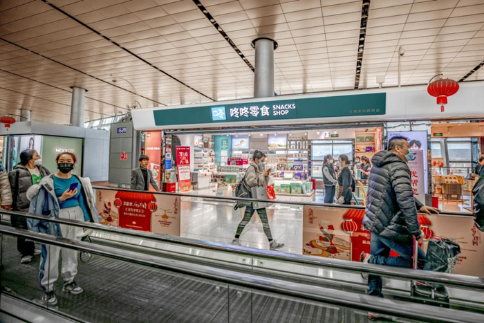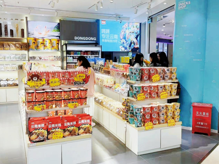 在昆明长水国际机场出发层,三个醒目的云南特色食品店铺引起不少旅客注目。这就是欲将云南米线带向全国,云南米线咚咚造的“咚咚食品”。