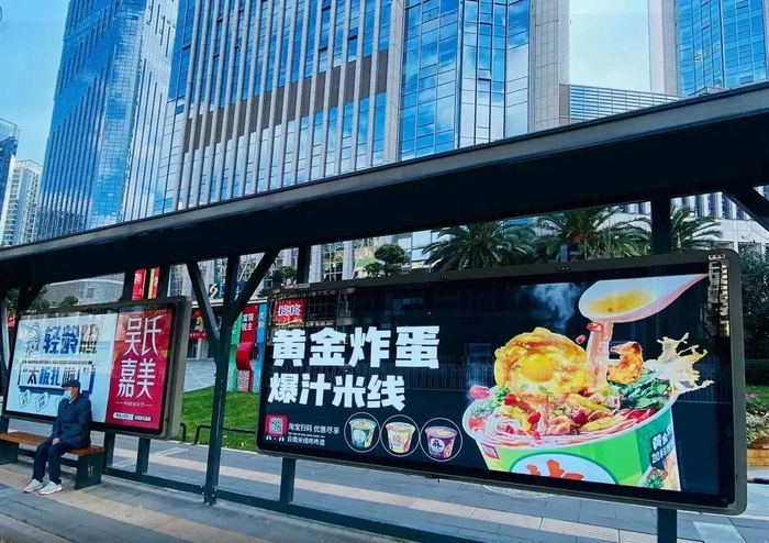 除了长水国际机场,在昆明一些公交车站牌、户外大型广告牌上,也出现了不少咚咚云南米线的醒目宣传。米线从餐饮店和自家厨房餐桌走向城市大屏,闯入了全国旅客的视野,赚足眼球,“云南米线咚咚造”牛气了!