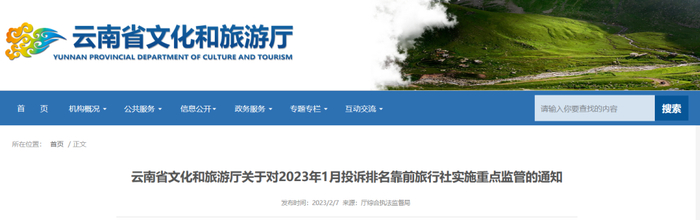 云南省文化和旅游厅发布通知