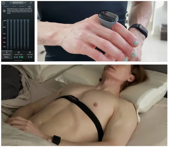他每天测量体重、体重指数、体脂,并在睡眠时监测清醒时的体温、血糖、心率变化和氧气水平。