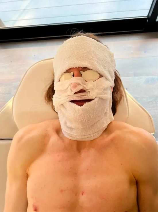 为了修复阳光对皮肤的伤害,他远离阳光,每天涂抹七种乳霜,每周都进行化学换肤、激光治疗。