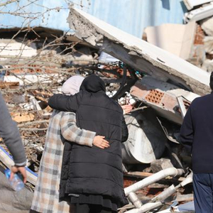 ▲2月7日,灾民在土耳其南部卡赫拉曼马拉什市一处地震废墟前相互安慰。图/新华社