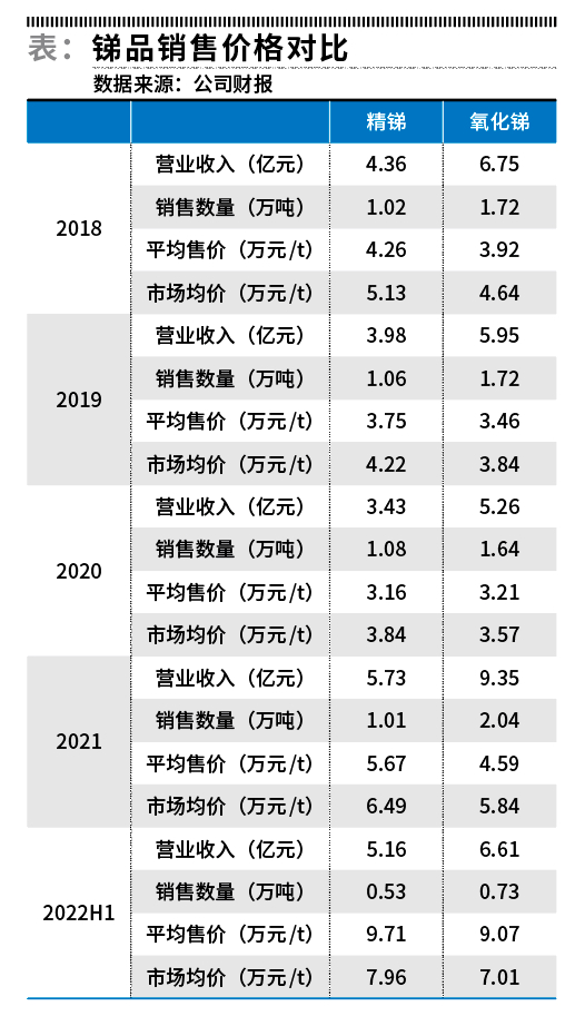 湖南黄金虽名为黄金,但是锑品的毛利甚至超过黄金:2022年上半年黄金业务毛利3.64亿元,而锑品业务毛利4.50亿元。