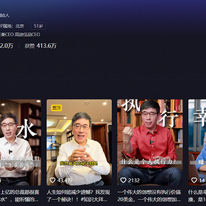 截至2月6日,陈向东的个人账号拥有182万粉丝,获赞413.6万。对于个人号而言,仅一个月就积累近200万粉丝,可谓十分成功。究其原因,一方面,作为知名企业创始人,陈向东的个人IP本身具有话题度,比如第一个视频便提及了当初被做空16次的经历。同时,陈向东的个人账号偏向于职场、成长、学习以及个人感悟等内容,话题度较高,涨粉难度相对较小。