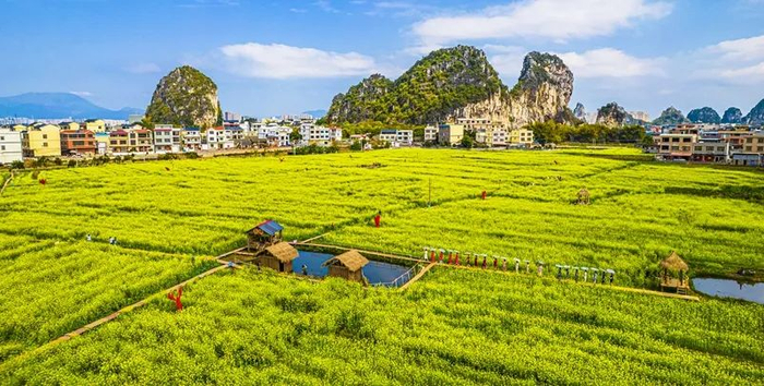 6.山边村:全国文明村、中国美丽休闲乡村,位于贵港市港南区,村内现有国家3A级旅游景区1家,主要景点有龟山风景区、文创核心区、花鸟大世界、生态农业观光区、休闲垂钓区、油菜花公园等,配套有精品民宿、特色农家乐,是乡村旅游热门打卡地。