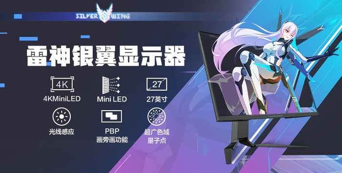 2021年,雷神科技经过深度调研,向市场推出“银翼”系列电竞显示器。该款产品作为行业首个融合“二次元”元素的产品,一经推出,引爆全网。