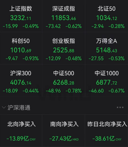 2月8日,A股高开后震荡走低,三大指数小幅下跌。截至收盘,沪指跌0.49%,深证成指跌0.62%,创业板指跌0.48%。北向资金净卖出13.89亿元,其中沪股通净卖出4.35亿元,深股通净卖出9.53亿元。