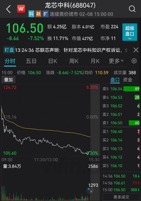 400亿芯片龙头胜诉 股价大跌逾7%