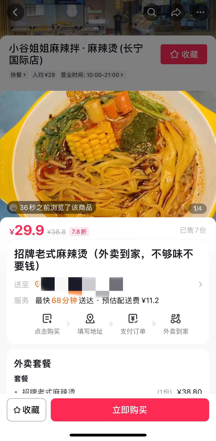 在配送费方面,对比美团和饿了么,抖音外卖也高了不少,同一家店铺,在抖音配送费达11.2元,饿了么则是免配送费。
