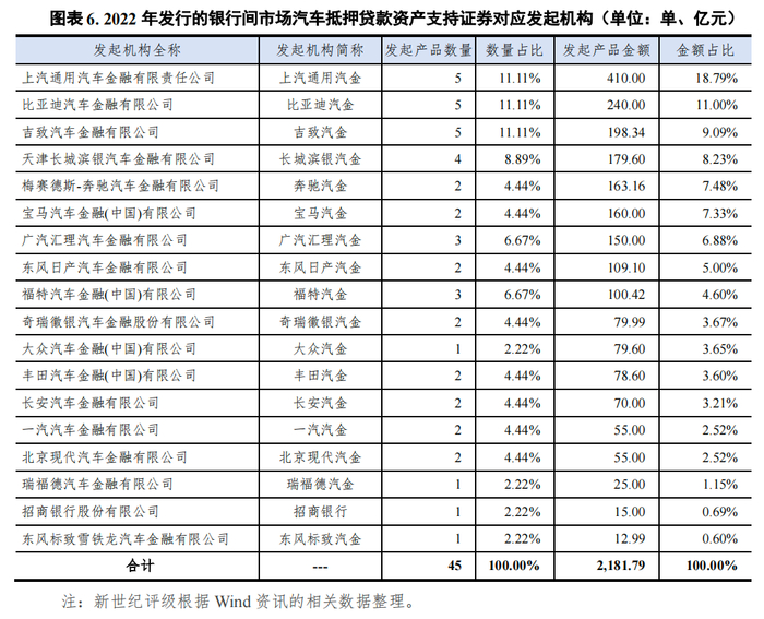 一、2022年银行间市场汽车抵押贷款资产支持证券发行情况
