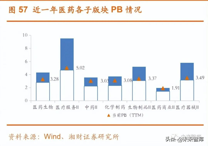 截至 2022 年 12 月 18 日,医药生物板块 PE 估值由近一年最高 35.06X 回落 至 24.60X,已处近十年底部位臵。医疗服务板块 PE 为 30.32X,近一年 PE 最大值为 69.95X,最小值为 29.20X,目前约位于近一年的底部水平。从近 10 年来看,医药行业估值处于历史较低水平,截至 2022 年 12 月 18 日,申万医药生物行业市盈率 TTM 为 24.60 倍,位于历史分位 5.70%。从申万二级行业来看,大部分细分行业也处于估值较低水平,医疗服务、医 疗器械和生物制品的市盈率分位较低,为 0.35%、1.67%和 6.86%。