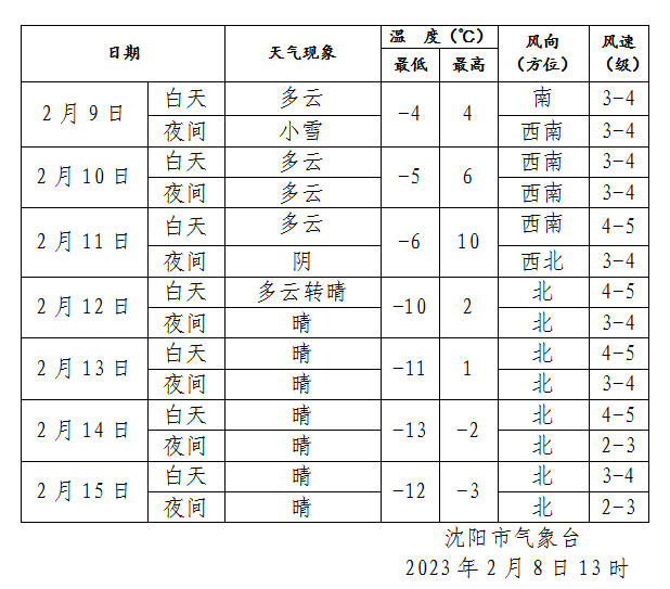 沈阳明天夜间大部分地区雪花飘飘