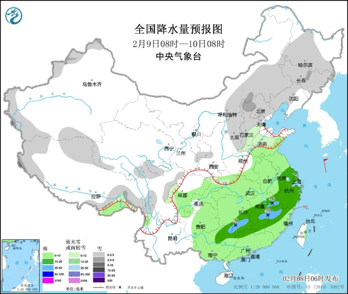 受高空槽影响,预计2月9日傍晚至夜间我省大部地区将出现小雪或阵雪(0.1~2.5 毫米)。注意防范降雪天气对春运、设施农业等的不利影响。