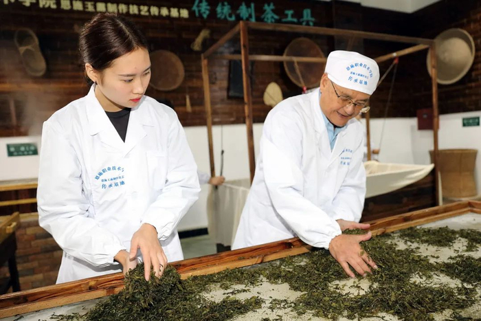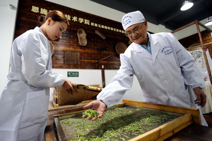 如今86岁高龄的杨胜伟,仍然坚守在学校恩施玉露非遗传承基地,对企业的盛邀不为所动。他说:“只要还有能力,就要把老祖宗留下的宝贵遗产传承下去。在恩施职业技术学院,他可以更好地向大家传承技艺。”