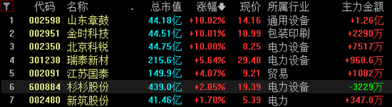 高压快充概念中恒电气、积成电子、泰永长征3股涨停。超级电容概念股山东章鼓、金时科技、北京科锐3股涨停。